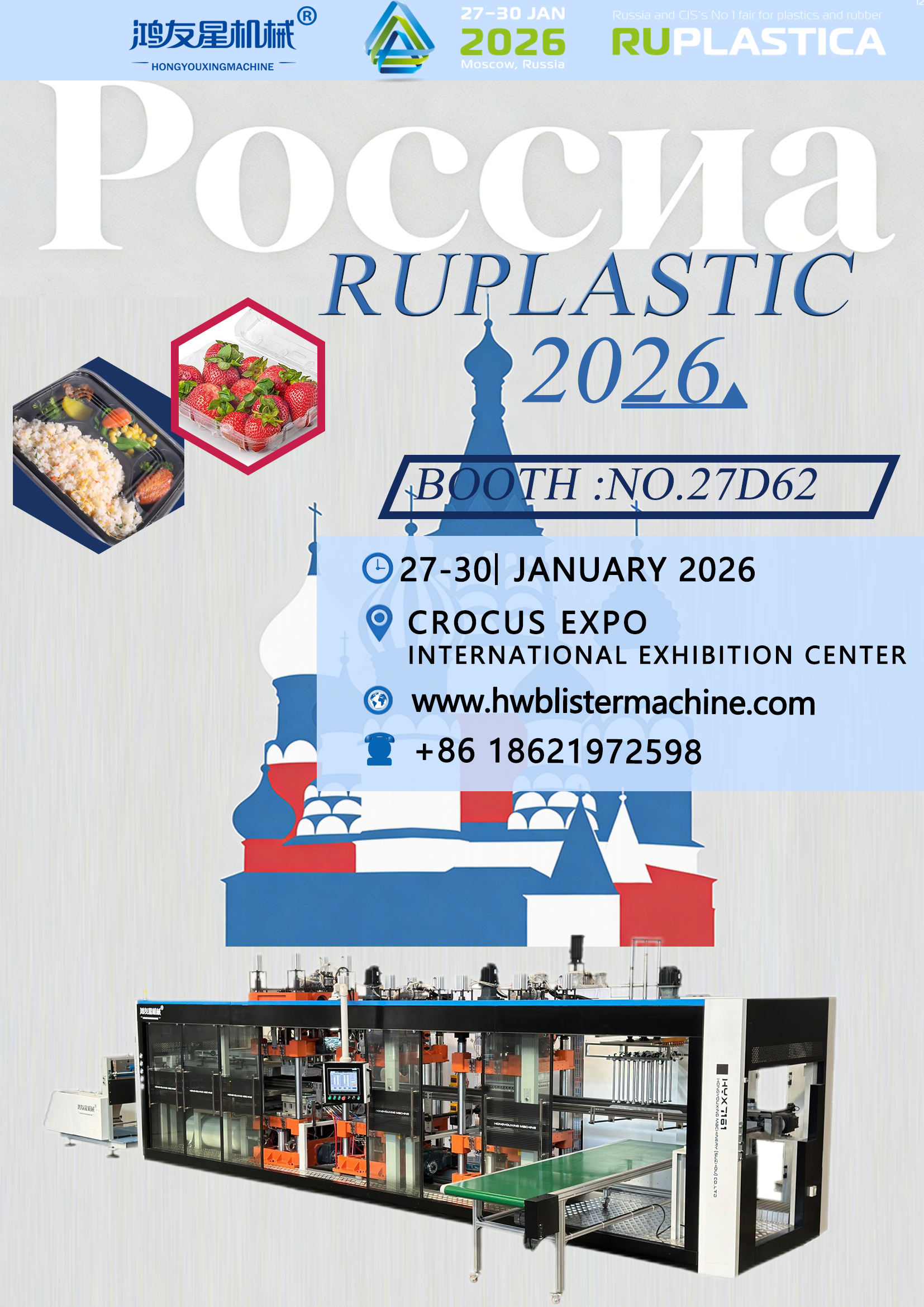 HONGYOUXING যন্ত্রপাতি (SUZHOU) CO., LTD. এর অংশগ্রহণ ঘোষণা করে আনন্দিত রূপলাস্টিকা 2026 , রাশিয়া এবং CIS অঞ্চলের প্লাস্টিক এবং রাবারের জন্য শীর্ষস্থানীয় আন্তর্জাতিক বাণিজ্য মেলা। থেকে প্রদর্শনী অনুষ্ঠিত হবে 27-30 জানুয়ারী 2026 এ ক্রোকাস এক্সপো আন্তর্জাতিক প্রদর্শনী কেন্দ্র , মস্কো, রাশিয়া।